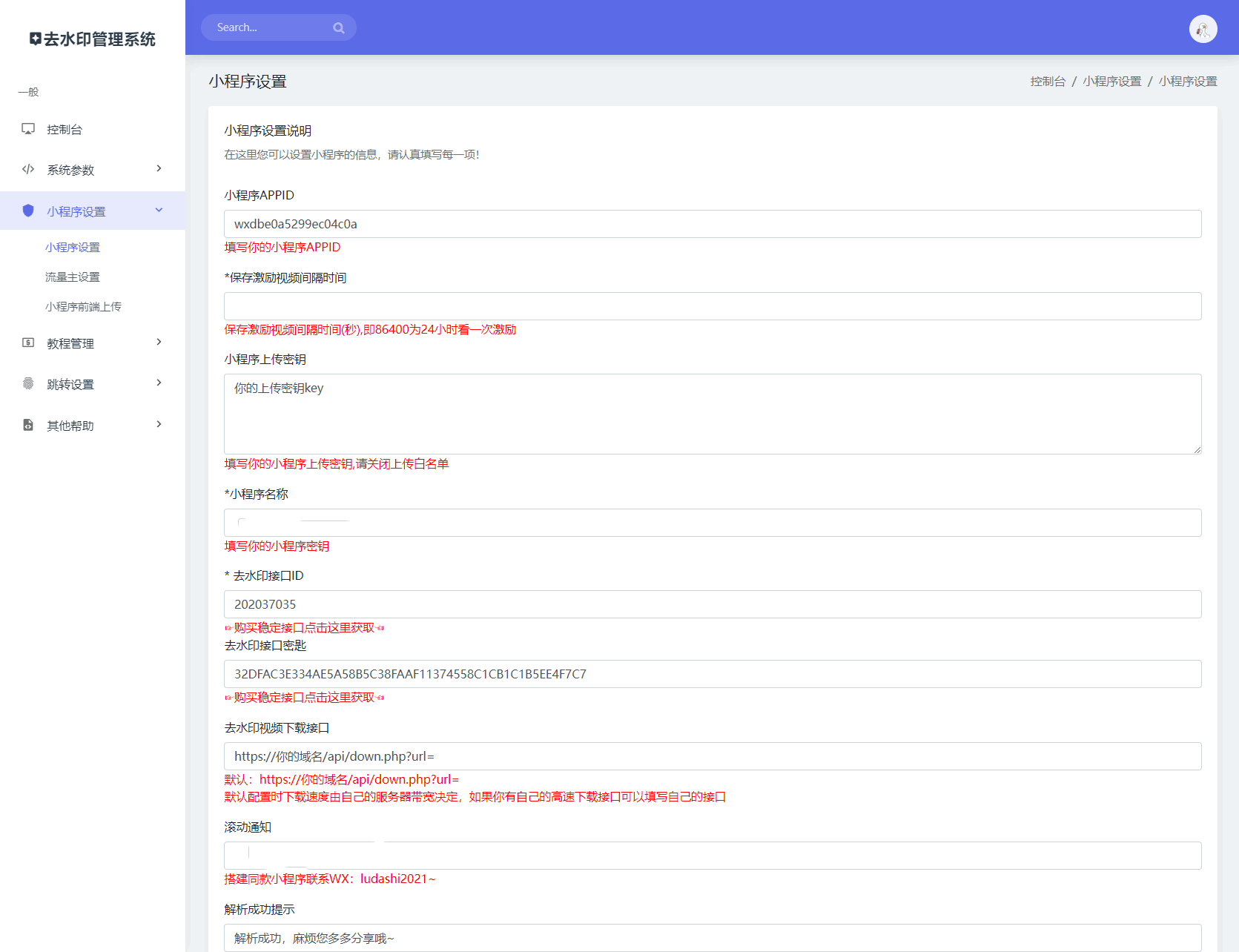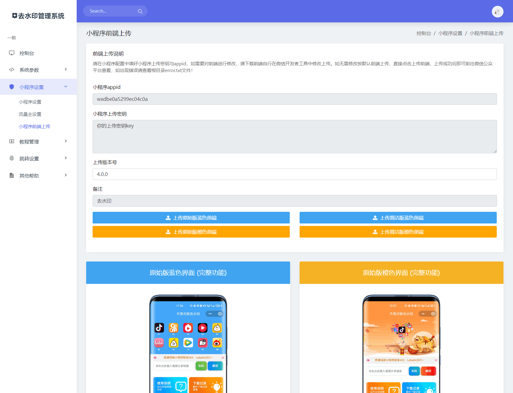 最新去水印小程序全套系统源码 – 多套模版_免授权 GDR643文章26评论 APP/H5源码 2025-08-2008:46:59 阅读模式 29这是一款去水印小程序具备流量主功能,前端与后台功能丰富多样,前后交汇互通 前端已完成改版,功能无任何删减。源码包含前端与后端,腾飞博客没有去测试,里面有详细安装教程,喜欢的自行部署吧!资源下载 隐藏内容,输入密码后查看 微信扫描二维码或搜索“奇客卡库” 输入“卡密”获取密码验证后才能查看。THE END 点赞 https://www.mfba.com.cn/4261.html 复制链接 去水印小程序重要声明本站资源来自会员发布以及互联网收集,不代表本站立场,如有侵犯你的权益请联系管理员, 我们会第一时间进行审核删除。站内资源为网友个人学习或测试研究使用,未经原版权作者许可,禁止用于任何商业途径!请用户仔细辨认内容的真实性,避免上当受骗!本站仅提供信息存储空间服务,不拥有所有权,不承担相关法律责任。请在下载24小时内删除!如果遇到付费才可观看的文章,建议升级终身VIP。全站所有资源“任意下免费看”。本站资源少部分采用7z压缩,为防止有人压缩软件不支持7z格式,7z解压,建议下载7-zip,zip、rar解压,建议下载WinRAR。您还感兴趣的文章 APP/H5源码情侣飞行棋网站源码-支持静态托管 APP/H5源码知识付费小程序源码-可开广告流量主 APP/H5源码在线实时群聊聊天室H5源码 APP/H5源码给网站添加添加四个新年快乐灯笼 APP/H5源码情侣答题领大奖-HTML源码 APP/H5源码安卓手机微信防红,域名链接跳外部浏览器情侣飞行棋网站源码-支持静态托管知识付费小程序源码-可开广告流量主在线实时群聊聊天室H5源码给网站添加添加四个新年快乐灯笼情侣答题领大奖-HTML源码安卓手机微信防红,域名链接跳外部浏览器景昇个人主页源码后台版APP下载推广单页-HTML源码支付宝和微信收款码二合一(HTML源码)最新域名出售交易平台源码修复版 上一篇WordPress插件-AI自动评论回复(对游客客户友好评论) 下一篇PHP域名授权验证系统1.2开源版 评论 0 访客 0 发表评论 匿名网友 随机评论 还有吗!没看够! 换一换 确定 确定 昵称 邮箱 网址 取消 有回复时邮件通知我