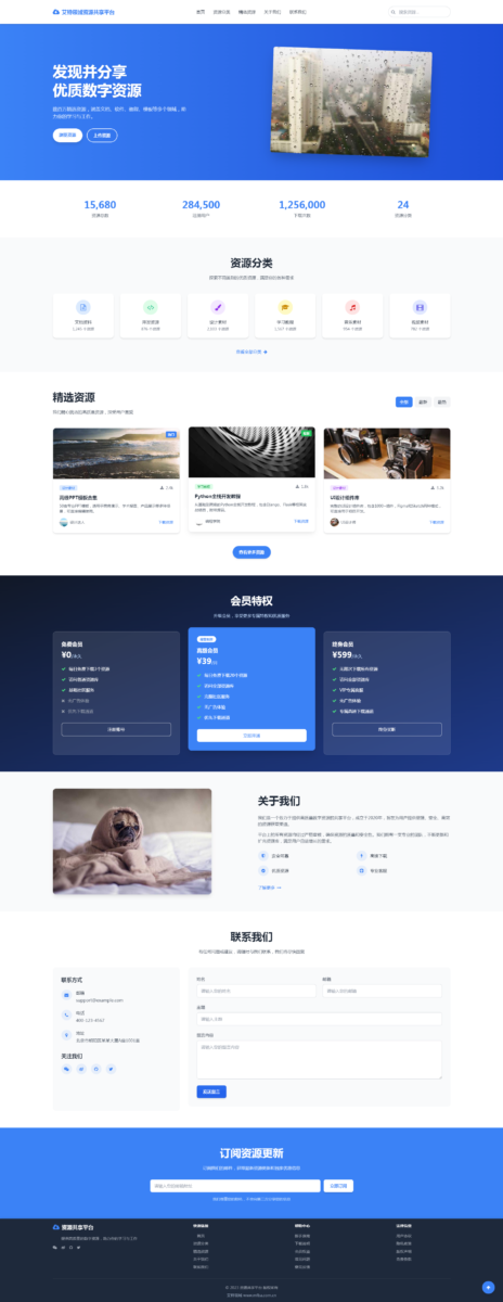 这是一款设计现代的单页网站,非常适合快速搭建资源分享平台。以下是关于这个模板的详细介绍,帮助你更好地理解并发布到自己的网站,简单的测试了,觉得是AI写的单页,但是UI还不错以蓝色为主,可以当导航页,喜欢的自行部署吧!