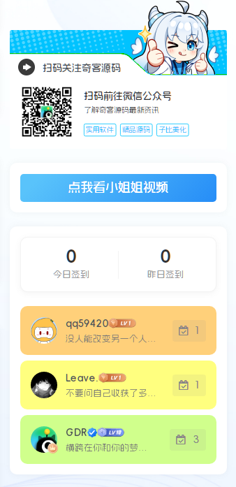 - 论坛发帖排行:显示论坛发帖数量最多的用户(需开启论坛功能)